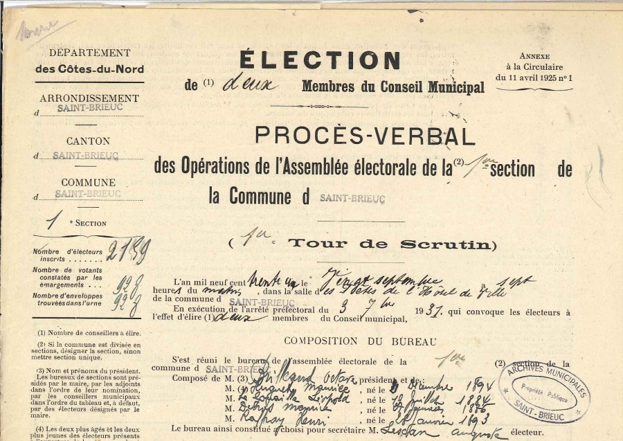 A partir des documents présents dans les fonds des Archives municipales (listes électorales, professions de foi, procès-verbaux d'élection) on voit se dérouler une opération dont la rigueur réglementaire assure la possibilité pour le citoyen de prendre place dans le processus démocratique et d'être un acteur de la vie politique.